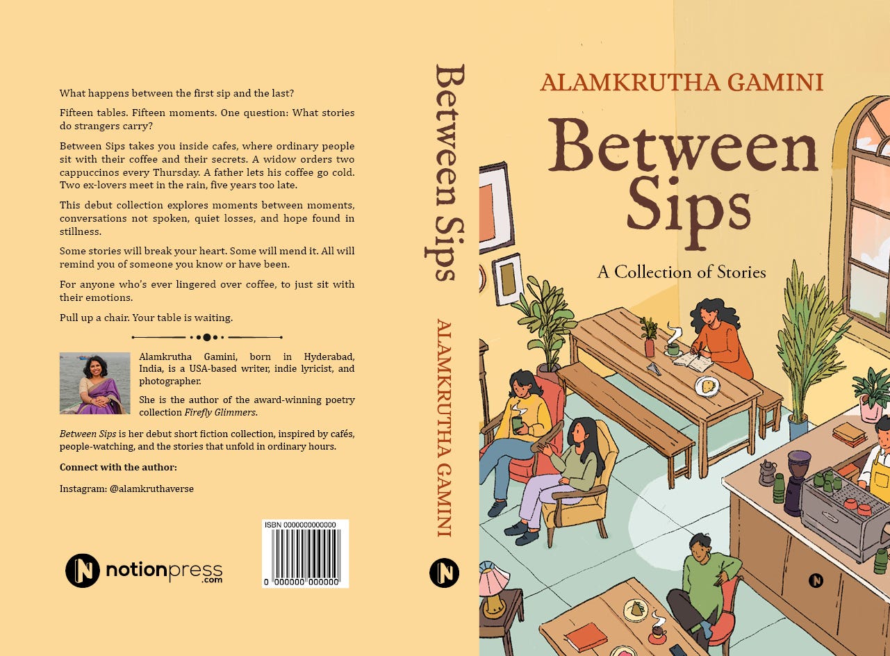 Between Sips was written slowly, over years, in those in-between spaces, various cafes, and different tables.